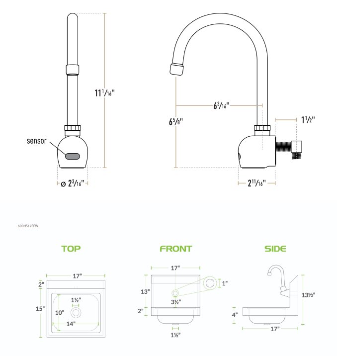 Finish ChromeFlow Rate 2.2 GPMMaterial BrassMounting Holes Required 1 Mounting HoleMounting Style Wall MountedPower TypeAC AdapterBatteryPressure Rating 60 PSISpout Clearance 6 5/8 InchesSpout Type GooseneckTemperature Rating 194 Degrees FahrenheitType Touchless FaucetsWater Inlet Size 3/8 Inches